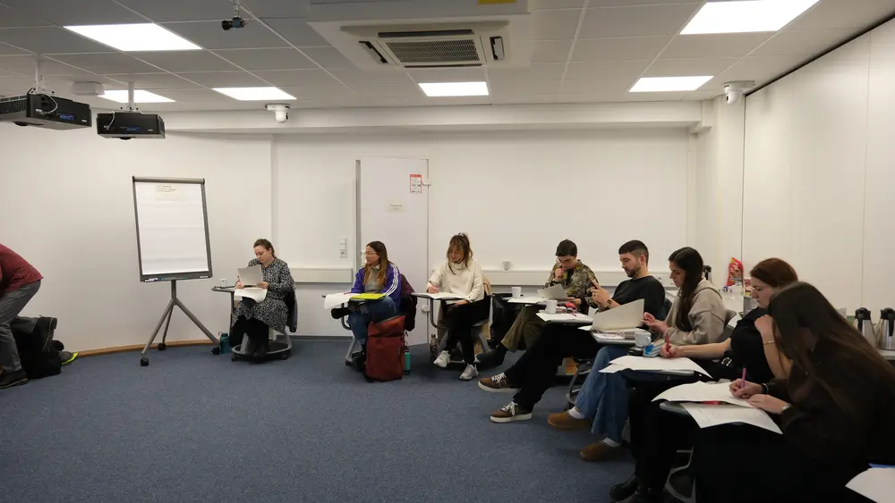 Ein besonderer Schwerpunkt des Moduls lag auf dem Austausch mit Dayana Fritz (Hessisches Ministerium für Arbeit, Integration, Jugend und Soziales) und Fabienne Weihrauch (Servicestelle Gemeinwesenarbeit der Landesarbeitsgemeinschaft soziale Brennpunkte Hessen e.V.). Die fachlichen Impulse und die anschließende Diskussion ermöglichten es, theoretische Ansätze der Gemeinwesenarbeit mit eigenen Praxiserfahrungen zu verknüpfen und neue Perspektiven für das eigene berufliche Handeln zu entwickeln.