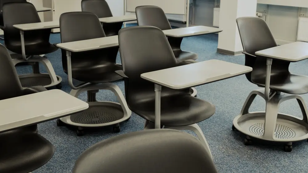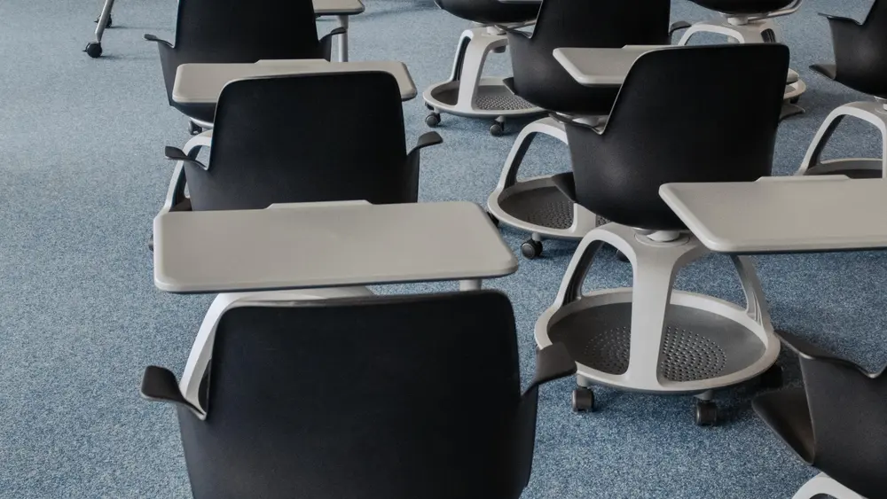 - Seminarstühle auf Rollen mit Tisch