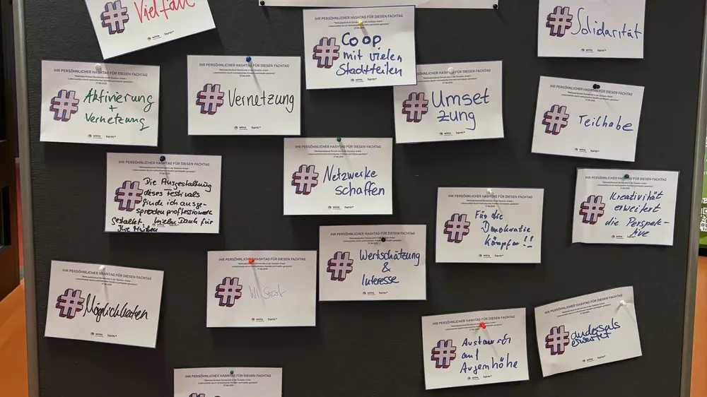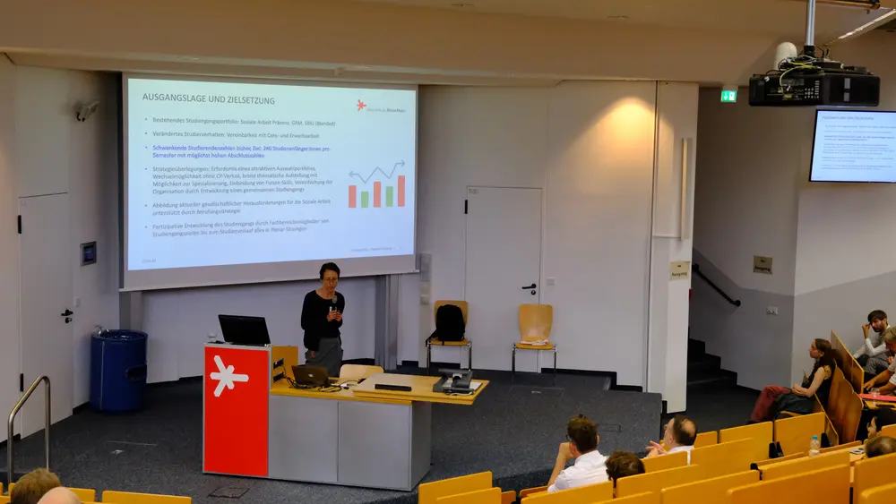Die Workshops zu den vier Methodensträngen („Beteiligung ermöglichen, Demokratie gestalten“, „Beraten, moderieren, Krisen gestalten“, „Im Team arbeiten, Situationen reflektieren, Interventionen planen“ und „Kreativität entfalten, Beziehungen gestalten“) griffen aktuelle gesellschaftspolitische Entwicklungen auf und stellten Demokratiebildung, Solidarität und Partizipation als Querschnittsaufgaben der Sozialen Arbeit in den Mittelpunkt.